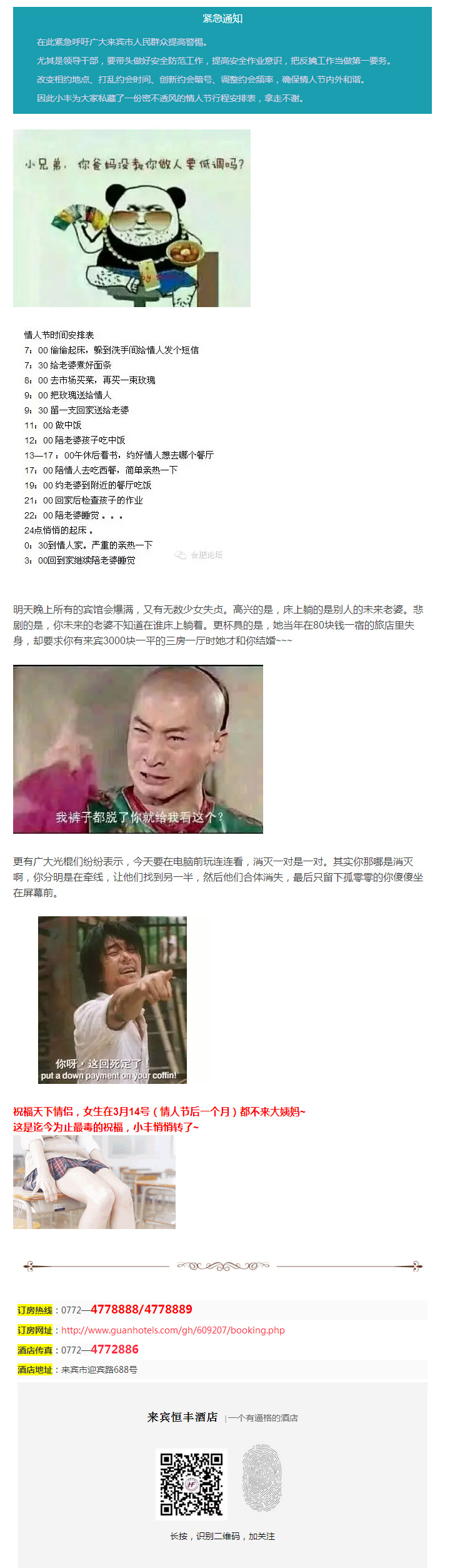 只要恩愛秀得好,床單為你準備好,分享微信到恒豐酒店免費開房!